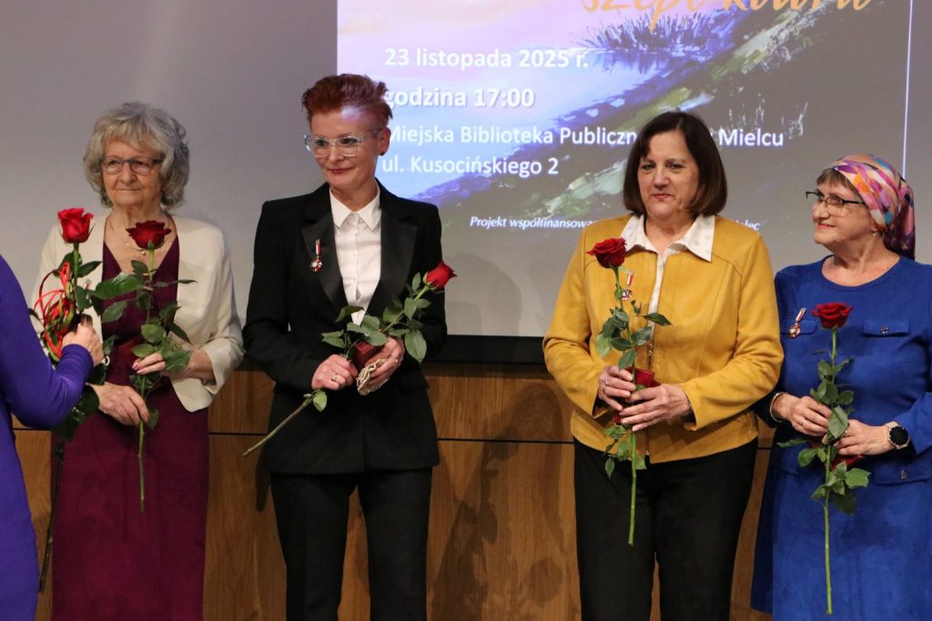 Zanim jednak wystawę udostępniono gościom wernisażu, w sali audio-wizualnej MBP odbyła się wyjątkowa uroczystość wręczenia odznak „Zasłużony dla Kultury Polskiej”. Wyróżnienia trafiły do Józefy Stańczak, Jolanty Strycharz, Emilii Żoli oraz Haliny Wąsik, a odznaki uroczyście przekazał w imieniu Minister Kultury i Dziedzictwa Narodowego Wiesław Buż, Wicewojewoda Podkarpacki. Gratulacje dla wyróżnionych oraz całego środowiska artystycznego naszego regionu przekazał także wyjątkowy gość uroczystości – Władysław Ortyl, Marszałek Województwa Podkarpackiego, a Tomasz Leyko, zastępca Prezydenta Mielca, do gratulacji dołączył zaproszenie na grudniowe wydarzenia kulturalne organizowane przez Samorządowe Centrum Kultury.