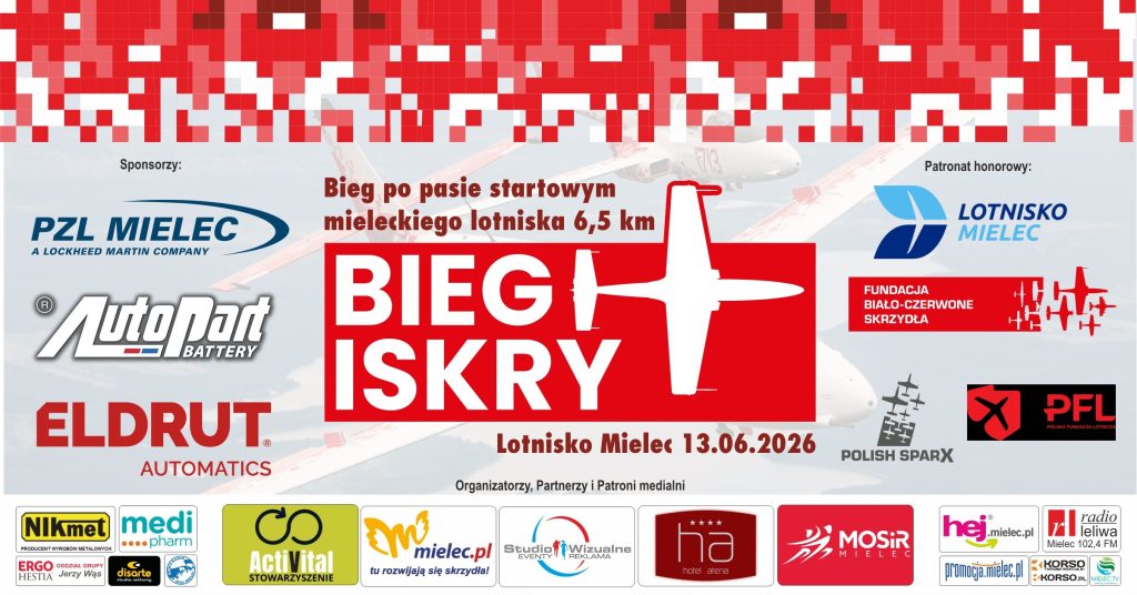 Studio Wizualne wraz z Partnerami wraca do wielkiego biegania w Mielcu. Już 13 czerwca br. na mieleckim lotnisku odbędzie się „Bieg Iskry”. Wydarzenie realizowane przy współpracy m.in. z  Miastem Mielec, Lotniskiem Mielec, Stowarzyszeniem ActiVital, MOSiR w Mielcu oraz Fundacją Biało-Czerwone Skrzydła. Kilkuset biegaczy pokona 6,5 km po pasie startowym mieleckiego Lotniska przy zapalonych światłach i zachodzącym słońcu.