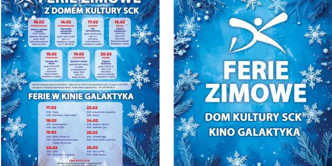 Strona główna / Najnowsze wiadomości / Ferie zimowe w Domu Kultury SCK