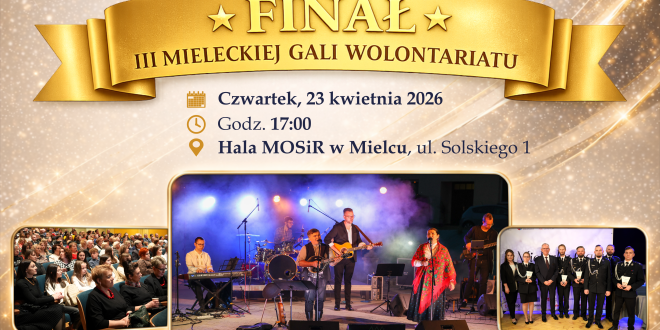 Finał trzeciej edycji Mieleckiej Gali Wolontariatu odbędzie się już w najbliższy czwartek, 23 kwietnia br. o godzinie 17:00w Hali Sportowo-Widowiskowej Miejskiego Ośrodka Sportu i Rekreacjiw Mielcu przy ul. Solskiego 1.