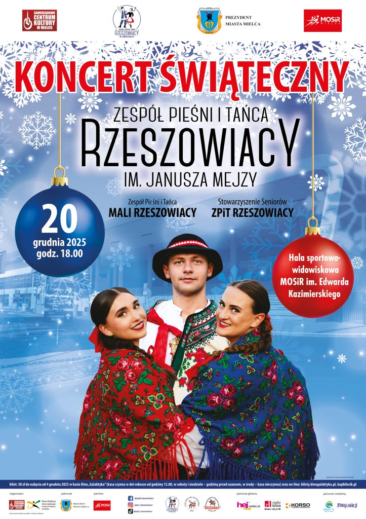 Świąteczny koncert Zespołu Pieśni i Tańca „Rzeszowiacy”, Chór absolwentów ZPiT „Rzeszowiacy”, „Mali Rzeszowiacy” i Stowarzyszenie Seniorów ZPiT „Rzeszowiacy” – 20 grudnia, godz. 18, Hala Widowiskowo-Sportowa MOSiR
