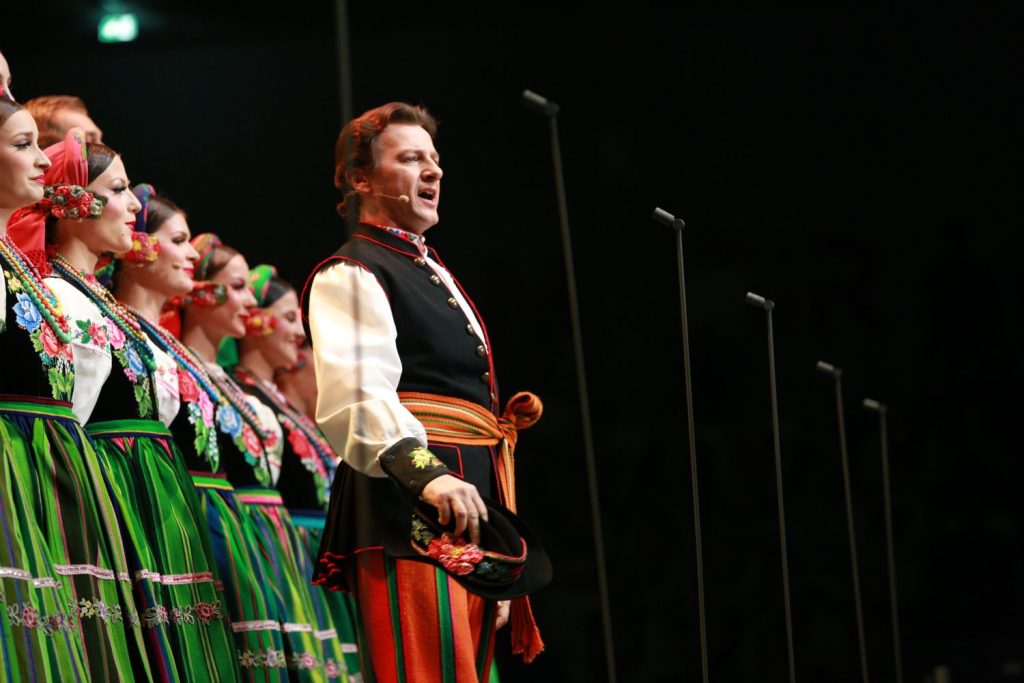 – Dzisiejszy koncert nosi tytuł „Kalejdoskop Barw Polski”. To nie tylko flagowy koncert, ale także kwintesencja działalności zespołu – zapowiadał występ „Mazowsza” Tomasz Leyko. – Nic tak jak „Kalejdoskop Barw Polski” nie oddaje istoty „Mazowsza”. Koncert to wybór pieśni i tańców pochodzących z różnych zakątków Polski. Prezentują one folklor wsi i miasteczek, ale też tańce narodowe, które „Mazowsze” także ma w swoim repertuarze. Za chwilę podczas koncertu przemierzymy całą Polskę. Usłyszymy charakterystyczne tańce, przyśpiewki, zobaczymy kostiumy. Prezentując pieśni ludowe i tańce narodowe od 75 lat niemal na całym świecie Mazowsze zyskało popularność i miano Ambasadora Polskiej Kultury. Jerzy Waldorff nazwał „Mazowsze” perłą w koronie Rzeczypospolitej – dodał Tomasz Leyko.