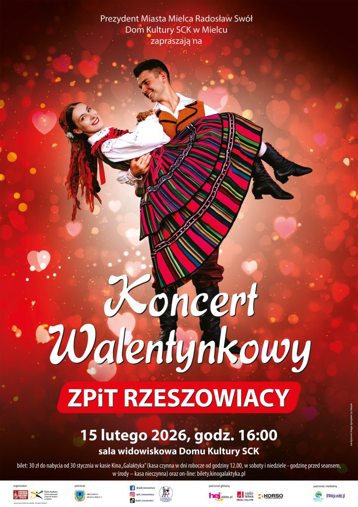 Walentynki bez naszego flagowego ZPiT „Rzeszowiacy”? Niemożliwe! Zespół Pieśni i Tańca „Rzeszowiacy” pojawi się przed mielecką publicznością z pierwszym koncertem w tym roku z mazurem, walcem, kujawiakiem oberkiem, tańcami ze Spiszu oraz pięknymi ludowymi pieśniami.