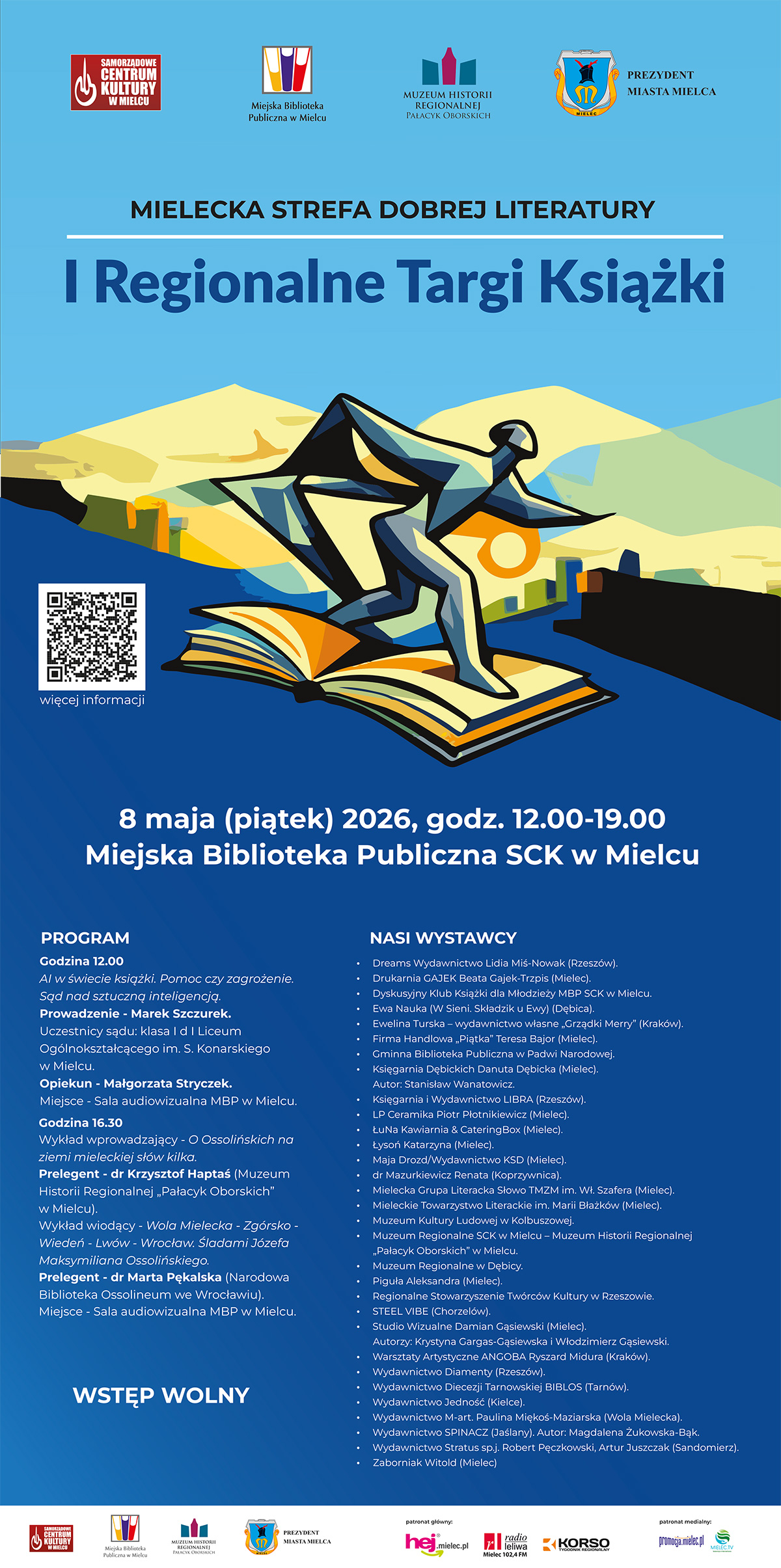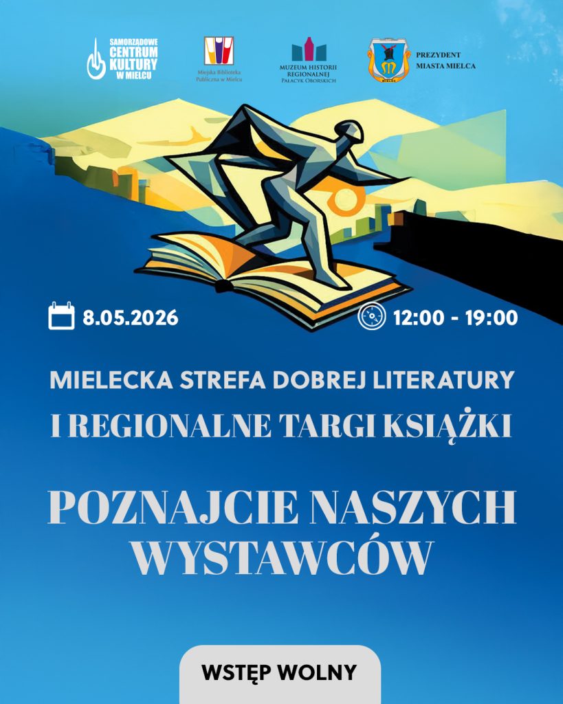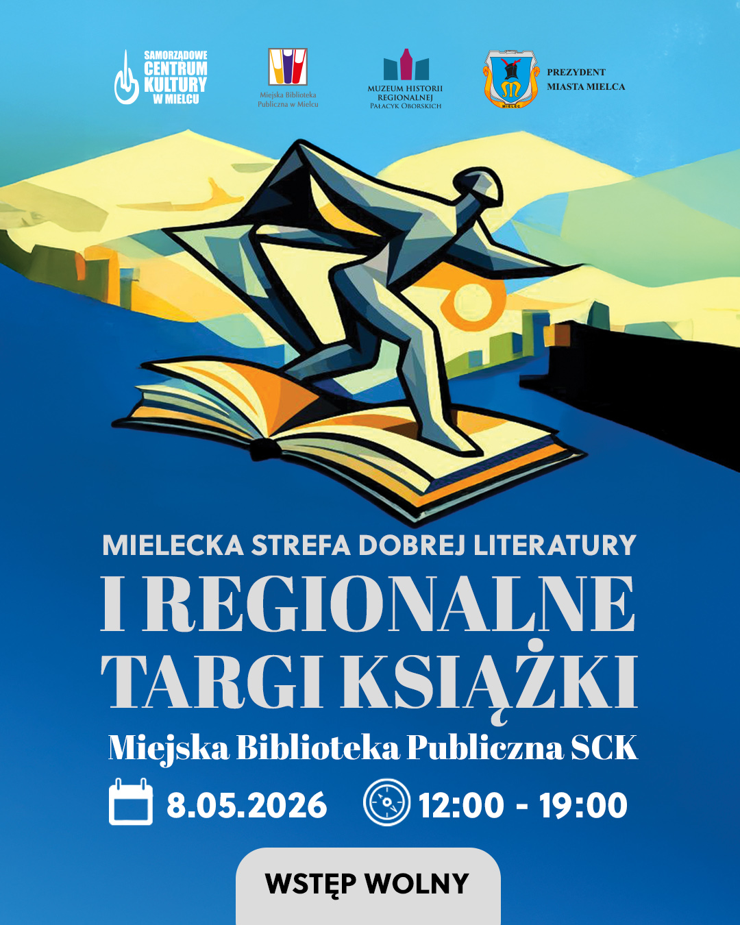 Prezydent Miasta Mielca Radosław Swół oraz Miejska Biblioteka Publiczna w Mielcu i Muzeum Historii Regionalnej „Pałacyk Oborskich” w Mielcu zapraszają 8 maja br. w godzinach 12.00-19.00 na wyjątkowe wydarzenie – I Regionalne Targi Książki.