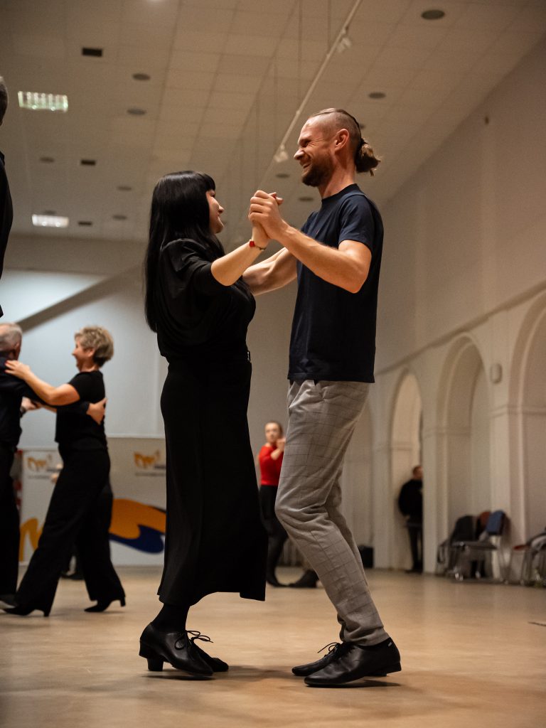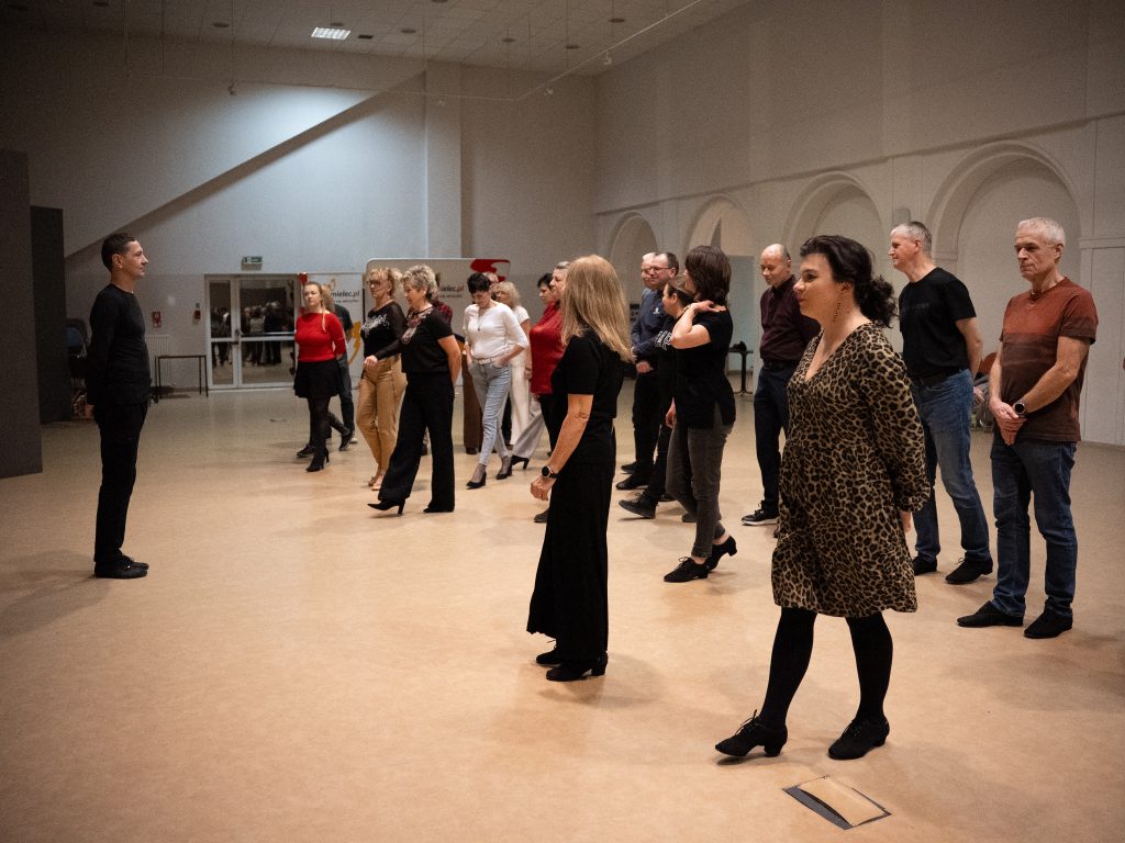 Pod czujnym okiem maestro Mariusza Sosińskiego parkiet szybko zapełnił się uśmiechami, obrotami i coraz pewniejszymi krokami. Była świetna atmosfera, dużo śmiechu i mnóstwo dobrej energii!
