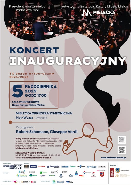 Mieleccy symfonicy pod niestrudzonym kierownictwem Piotra Wyzgi podczas koncertu inaugurującego nowy sezon artystyczny wykonają ikoniczne dzieła autorstwa: Giuseppe Verdiego (uwertura do opery „Nabucco”) i Roberta Schumanna (III Symfonia „Reńska”).