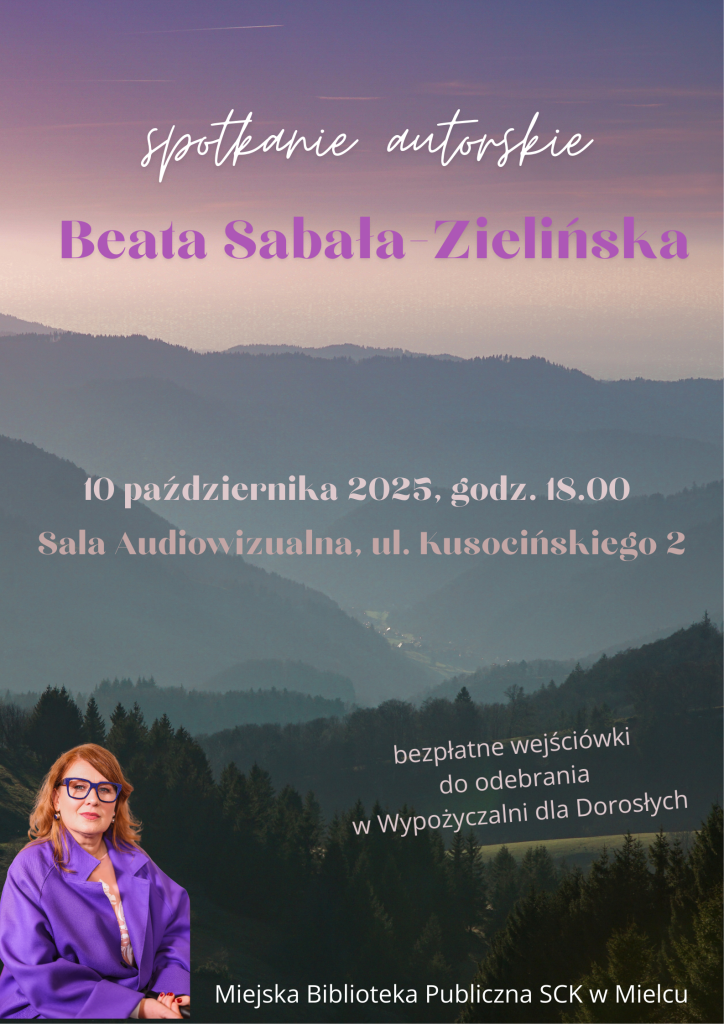 Miejska Biblioteka Publiczna SCK w Mielcu zaprasza na wyjątkowe spotkanie autorskie z Beatą Sabałą-Zielińską – rodowitą góralką, dziennikarką radiową, publicystką i autorką bestsellerowych książek o Tatrach i Zakopanem.