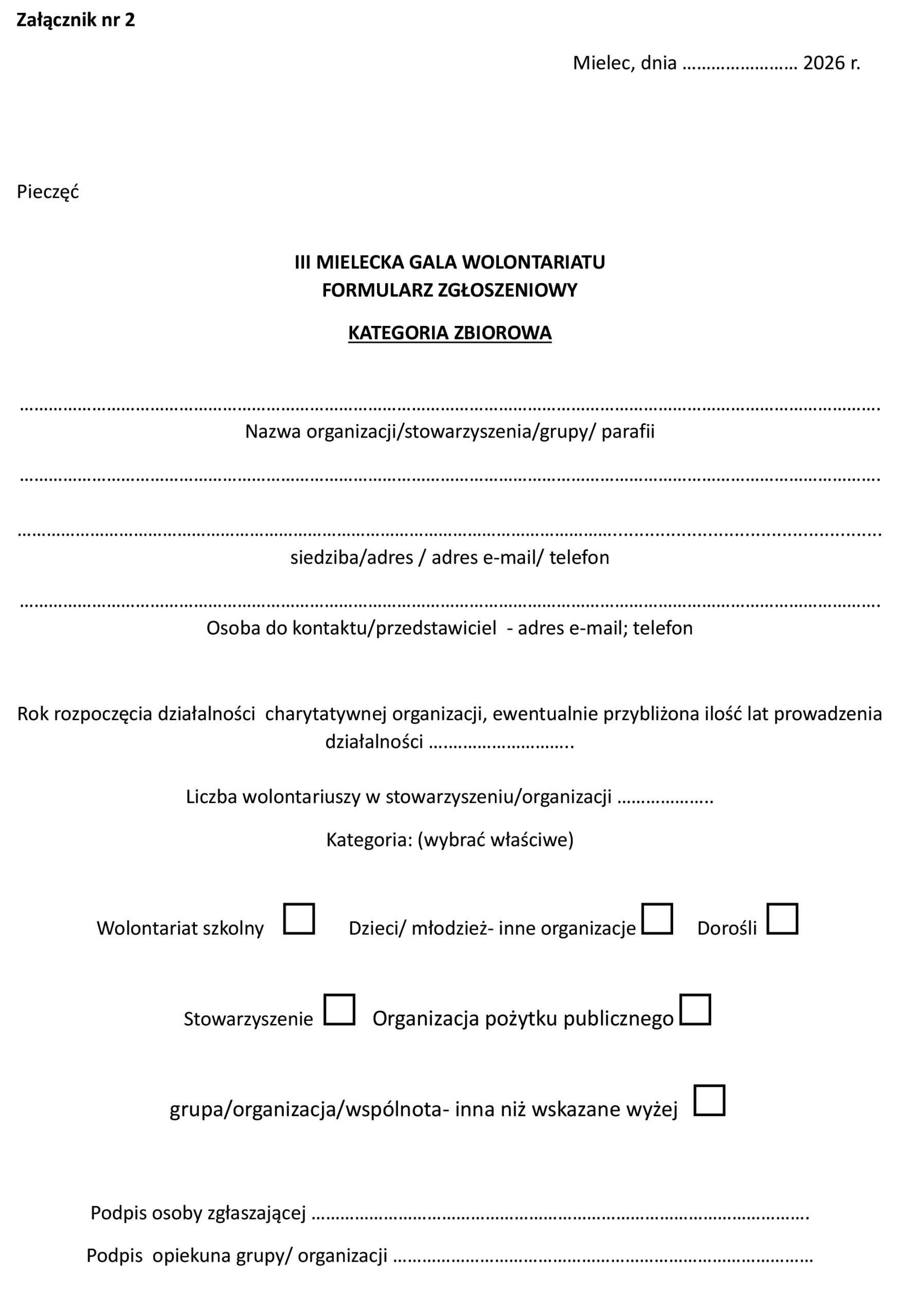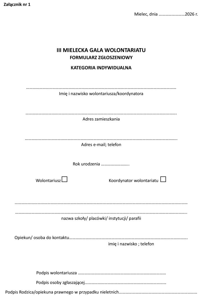 Warunkiem uczestnictwa w III Mieleckiej Gali Wolontariatu jest wypełnienie formularza zgłoszeniowego, który należy dostarczyć w wersji papierowej do Biura Poselskiego Fryderyka Kapinosa przy ul. Obrońców Pokoju 6 w Mielcu, do dnia 16 marca br.