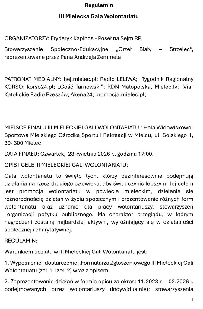 Wolontariusze z Mielca i powiatu mieleckiego znów będą mieli swoje święto! Poseł na Sejm RP Fryderyk Kapinos zaprasza do wzięcia udziału w III Mieleckiej Gali Wolontariatu.