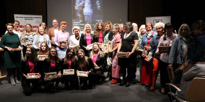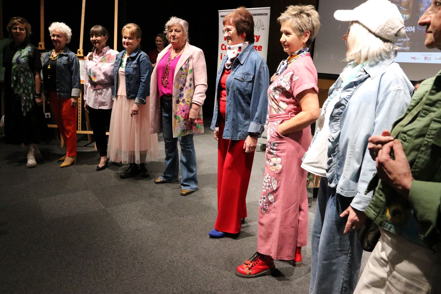Spotkanie z interesującą kobietą wielu pasji uświetnił występ zespołu wokalnego „Summer Voice” Domu Kultury SCK, a także mini pokaz mody, podczas którego modelki prezentowały stroje z malarskimi zdobieniami Teresy Pogody.