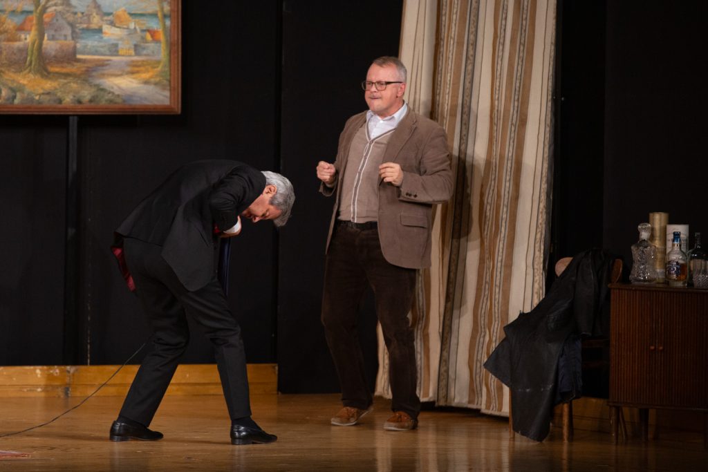 A potem publiczność mogła już wejść w świat stworzony przez dwóch znakomitych aktorów – Piotra Polka i Piotra Szwedesa. Komediowy spektakl „Pół na pół” dzięki błyskotliwym dialogom i wyśmienitemu aktorstwu komediowemu został przyjęty przez mielecką publiczność niezwykle ciepło.