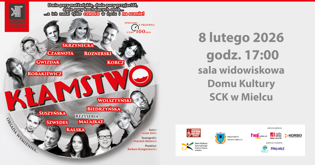 Zapraszamy na spektakl teatralny „Kłamstwo” w gwiazdorskiej obsadzie i reżyserii Wojciecha Malajkata, który zaplanowaliśmy na 8 lutego o godz. 17.